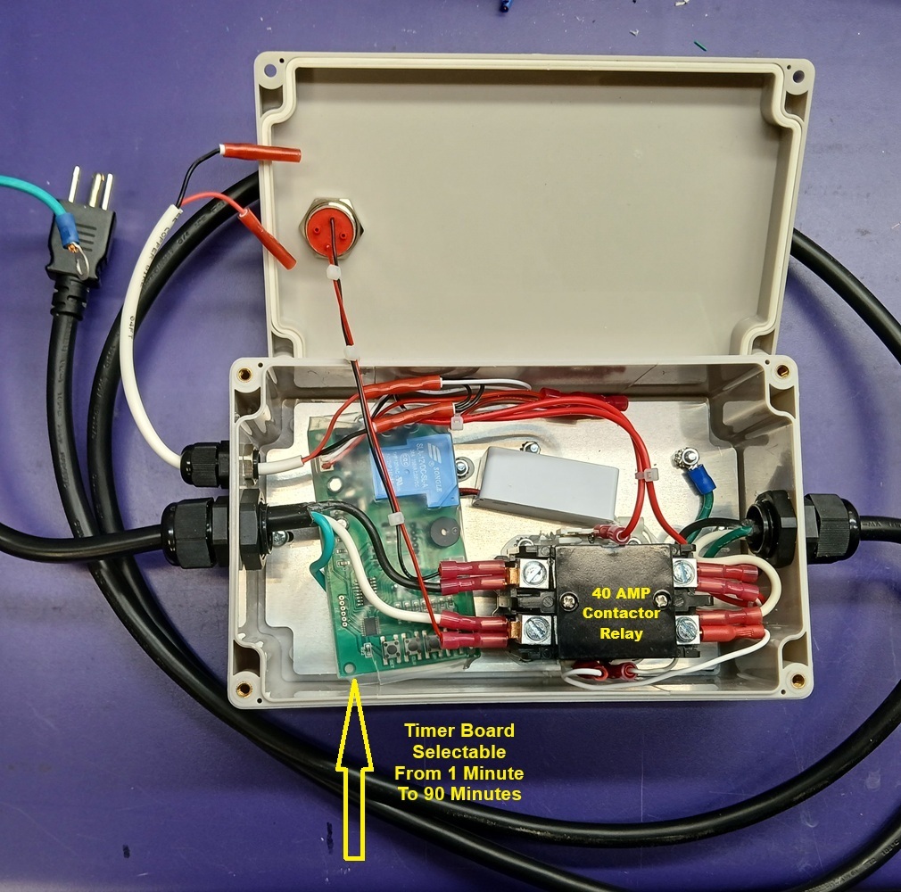 The VendaVolt Timer access cover is secured with a high security tamper proof screws. Inside of the waterproof enclosure is a 40A 110~120 volt contactor relay & 12 volt solid state power supply. The VendaVolt Timer receives signals from the host Model 1106 Central Payment Station. (Will operate non-coin operated home style clothes washers & gas dryers, or upgrade vintage timer motor coin slide operated washers)