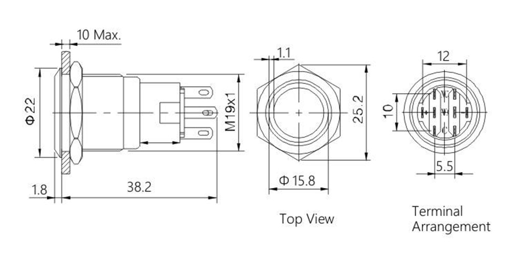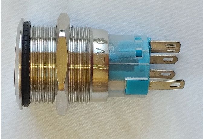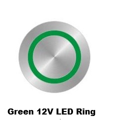 Momentary stainless steel push button with 12V Green LED inner ring and red “STOP” center label. Switch contacts are; common, normally open & normally closed. Includes neoprene gasket and locking nut. Click this link to “Contact Us” for same day reply.
